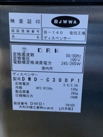 大和冷機 ウォーターディスペンサー DWD-C300P1 になります。